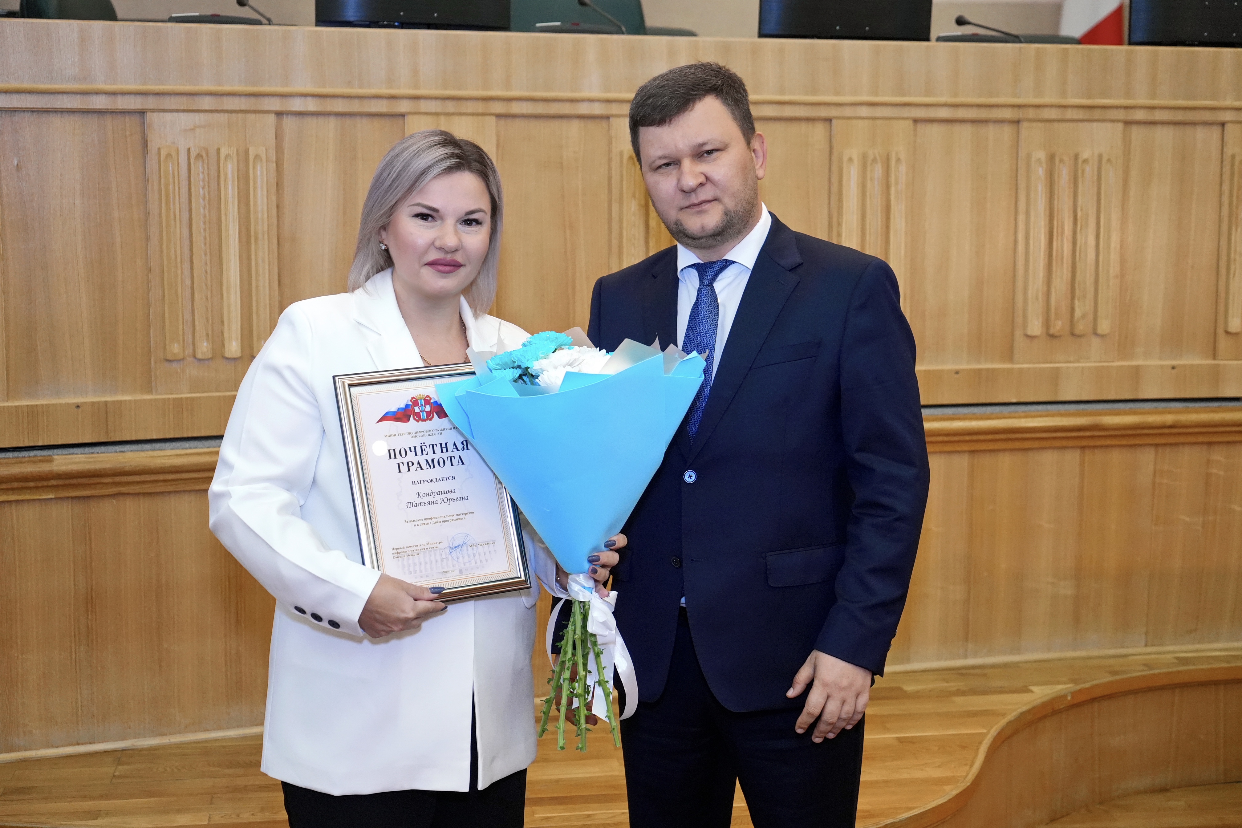 В честь прошедшего Дня программиста состоялась торжественная церемония награждения омских ИТ-специалистов. Сотрудники Отдела мультимедийных технологий получили почетные грамоты и благодарственные письма от Правительства и Министерства цифрового развития и связи Омской области.